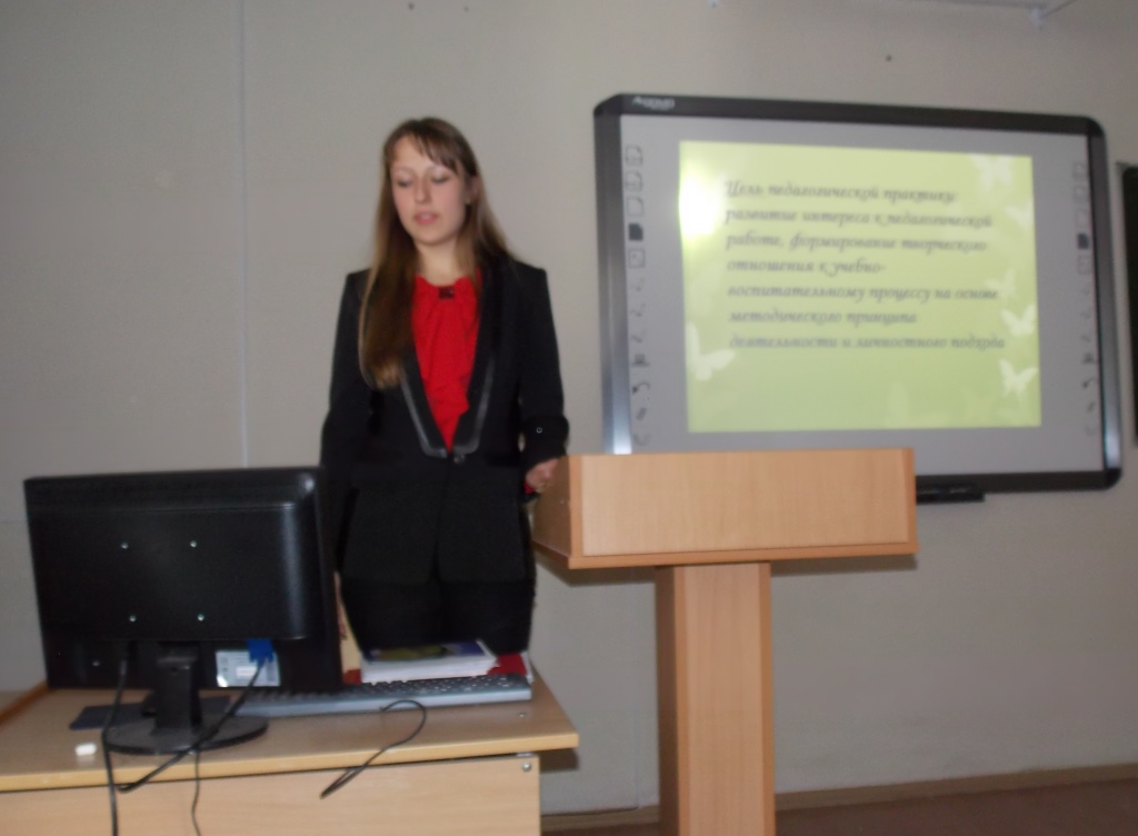 Студентка Науменко В.Н. докладывает результаты прохождения педагогической практики в средней школе № 14 г. Мозыря