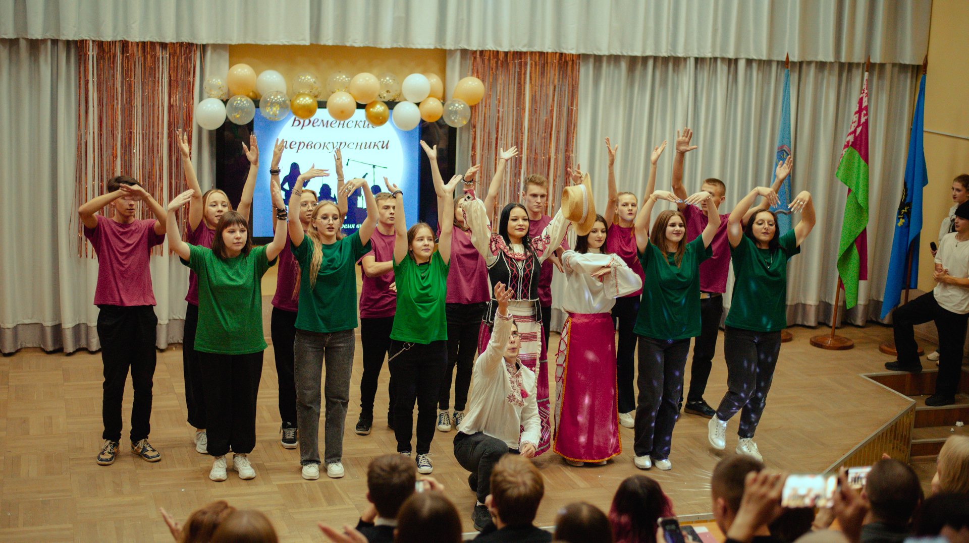 Успех стал возможен благодаря общим усилиям, сплоченности и ответственности участников и их тренеров: старшекурсников И.Дедок, И.Михалёнок, А.Волковой, Н.Фигуриной. Они писали сценарий, занимались подготовкой композиции, работали над актёрским мастерством.