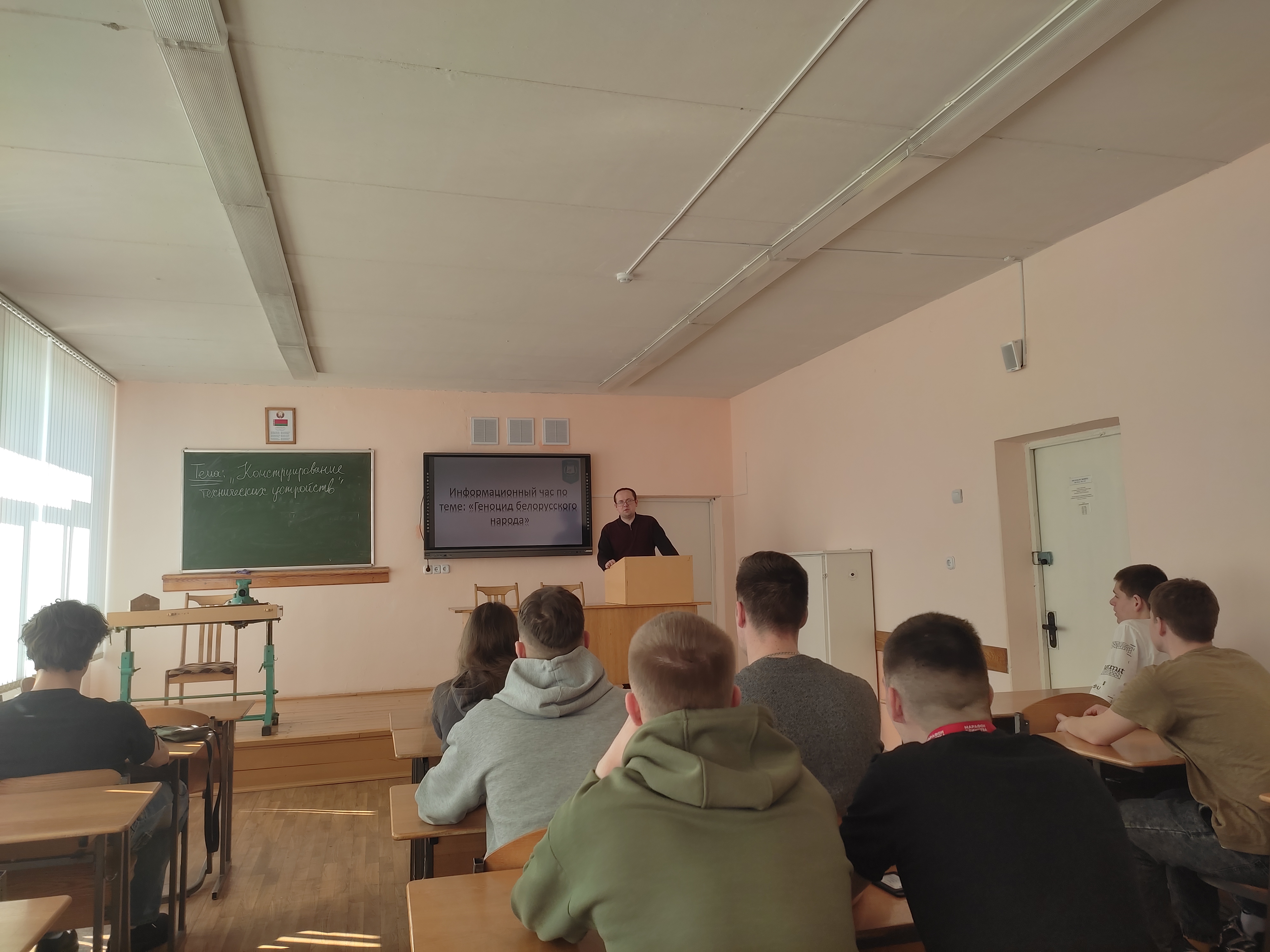 Кураторы на видеоматериалах, подготовленных презентациях рассказывали студентам о страшных событиях военных лет, о погибших и замученных мирных жителях Беларуси, о новых фактах жестокости немецких захватчиков.