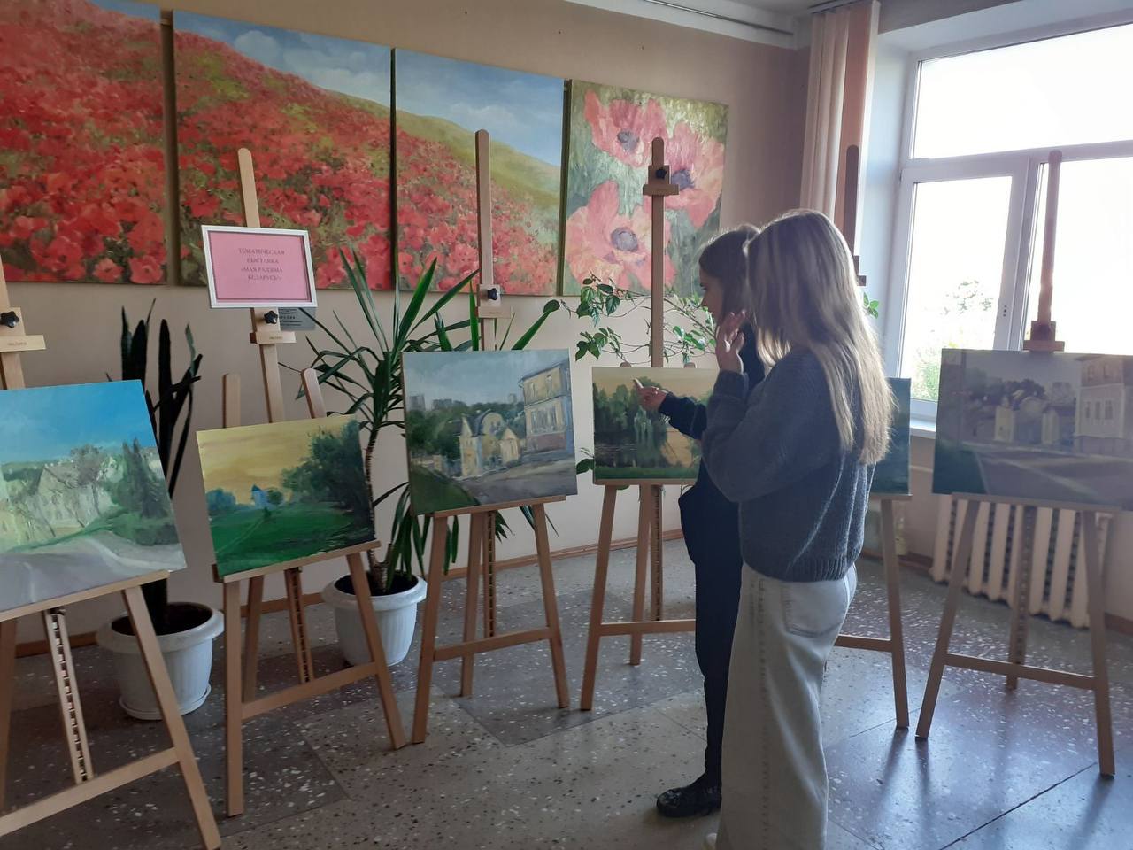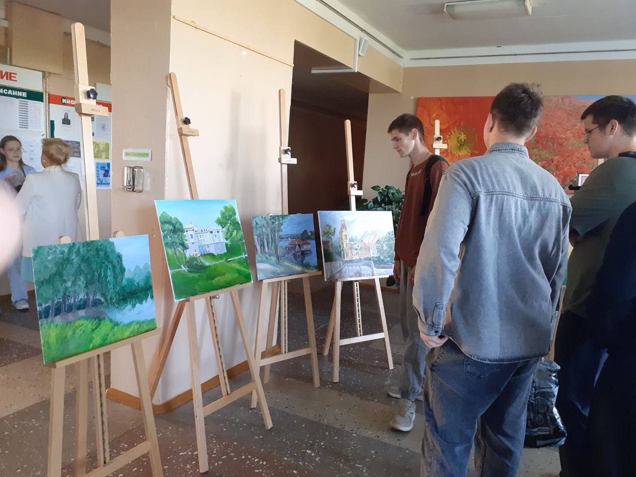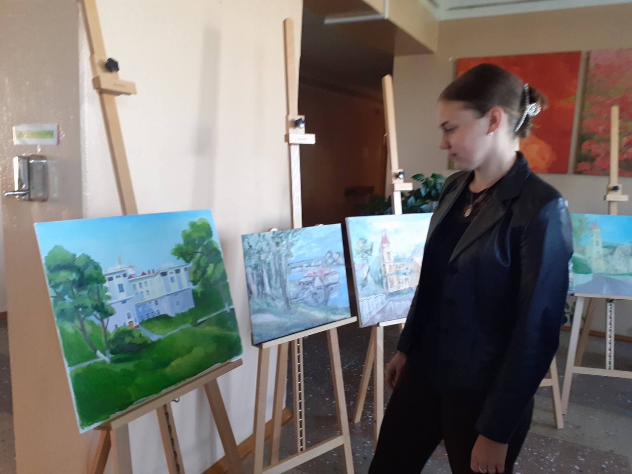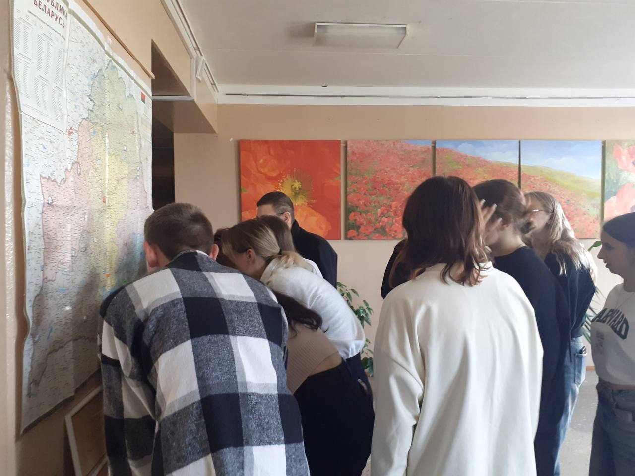 Большой интерес у студентов вызвала тематическая выставка картин, подготовленная студентами 3 курса 4 группы (руководитель: старший преподаватель О.С.Дорофеева). Посетители выставки смогли познакомиться с достопримечательностями Мозырщины.